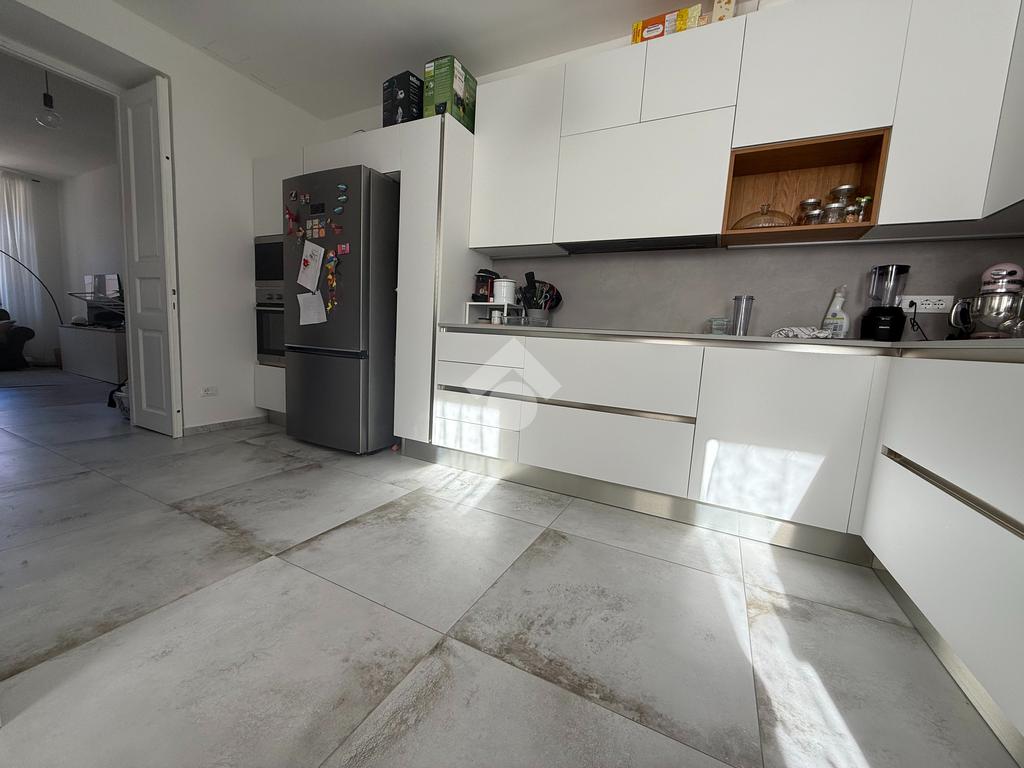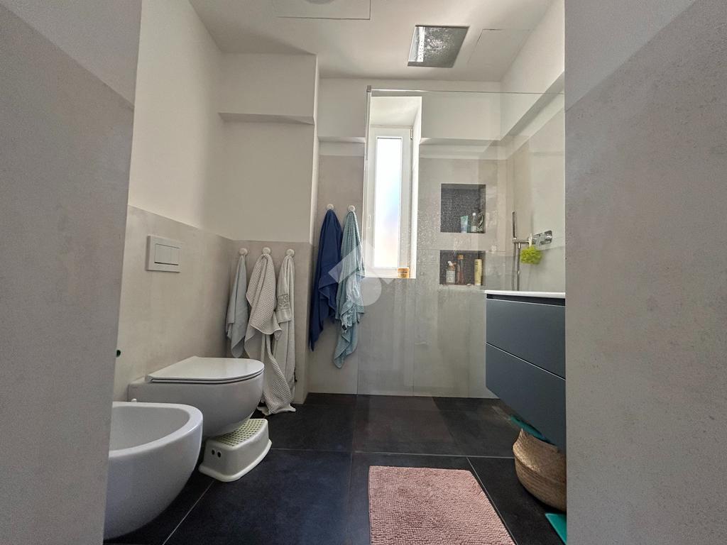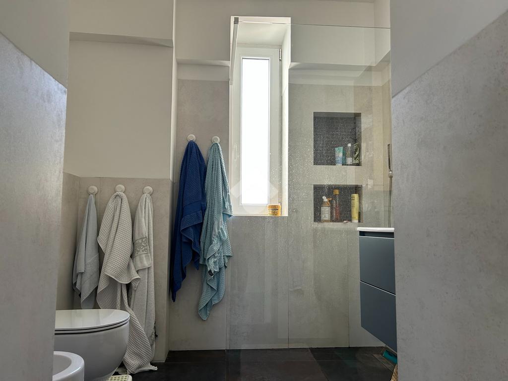 Dall’atrio d’ingresso troviamo uno spazioso soggiorno di circa 27 metri quadrati, esposto interamente sulla tranquilla Via Testi. Di fronte al soggiorno troviamo una cucina moderna e funzionale, con affaccio su una tranquilla corte interna. La zona giorno si conclude con un bagno completo e finestrato dotato di una spaziosa doccia walk-in. Proseguendo, troviamo la zona notte composta da quattro camere da letto, una matrimoniale e tre singole. La camera matrimoniale, gode di doppia esposizione e, dalle sue ampie finestre, si puo' ammirare un suggestivo scorcio sul mare.